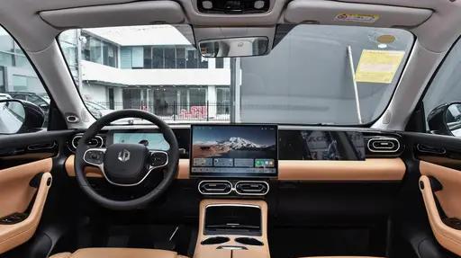 再说动力部分,这款车搭载了一套由1.5L自然吸气发动机和永磁同步单电机构成的增程式混合动力系统。200kW的电机功率和360N·m的扭矩在实际驾驶中的表现可以说“够用且讨喜”。初段加速时,典型的电动车特性非常明显——踩下电门后,车辆迅速做出了响应,那种推背感虽然不算特别强烈,但完全能满足日常超车或者并线时的需要。从静止到100km/h的加速时间为8.3秒,说不上多快,但对于一台家用中型SUV来说已经很流畅了。